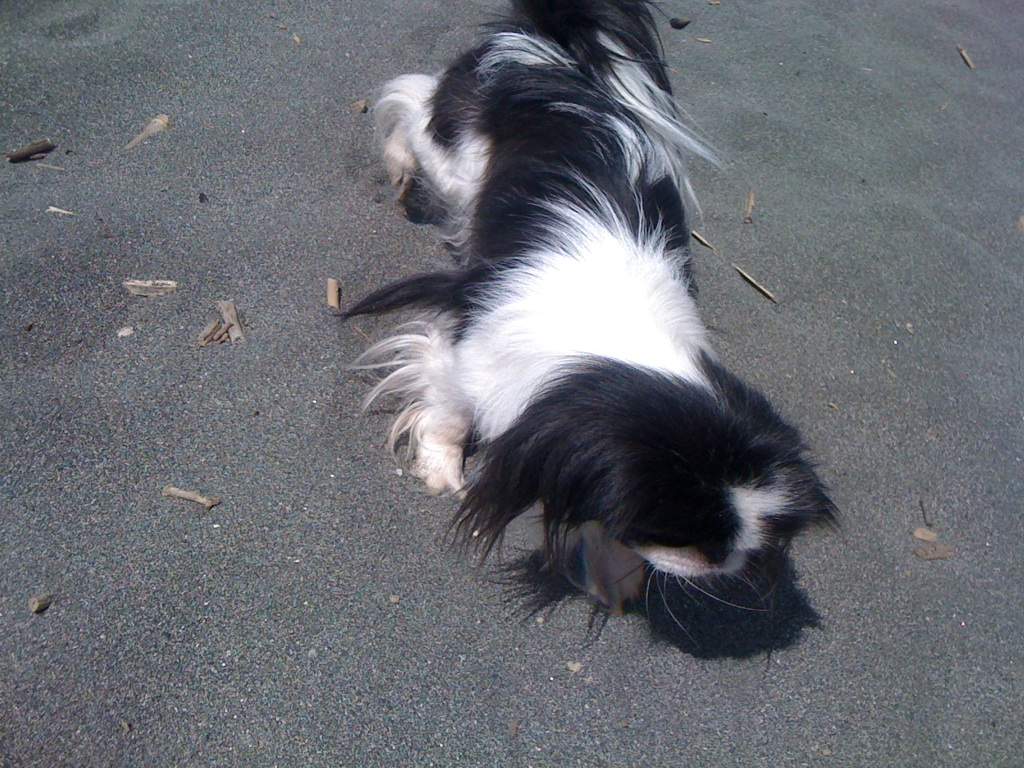 浜辺で海藻を食べようとするので、蹴飛ばして転がしてやりました。